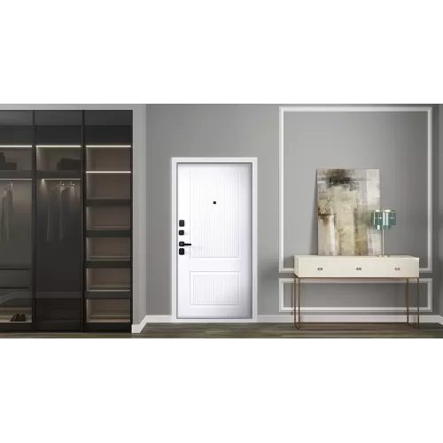 Scandi - металлическая дверь со стильным дизайном и солидными характеристиками безопасности. Особого внимания заслуживает внутренняя отделка модели, представляющая собой декоративную панель в классическом стиле. Модель будет отлично сочетаться по стилю с дизайном межкомнатных дверей в квартире.