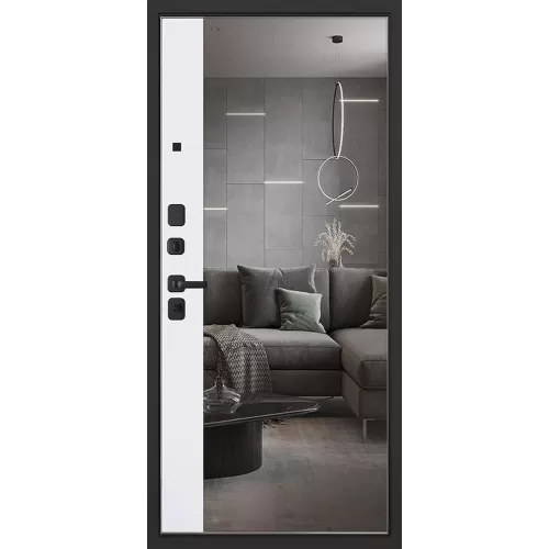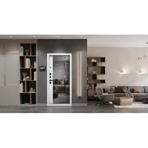 Дверь "Scandi" с зеркалом стильная защита для дома. Есть все стандартные размеры! Особенно вас порадует внутренняя панель с зеркалом и невероятно актуальный цвет отделки. Дверь оснащена повышенной шумо- и влагозащитой, имеет 3 класс взломостойкости и срок службы до 20 лет. Закажите бесплатный замер и убедитесь сами!