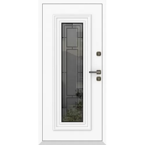 Внутренняя отделка: Оцинкованная сталь 9016, декор. алюм. штапик (классич. дизайн) Фрезеровка М21