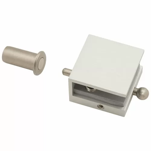 Один из элементов для монтажа двухпольной (распашной) стеклянной двери - шпингалет. Предназначен для фиксации стеклянного дверного полотна в закрытом положении. Один или два шпингалета (на выбор) крепятся к одному из полотен.