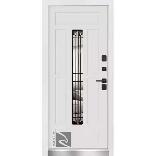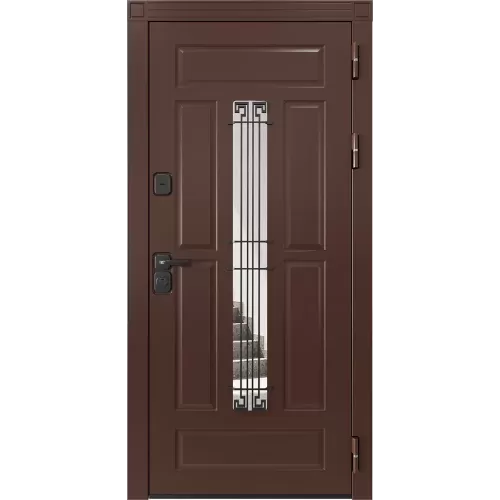 Отделка: Ковка + 4х камерный энергосберегающий стеклопакет, 16 мм панель МДФ, Эмаль RAL 8017 / 16 мм панель МДФ, Белая эмаль RAL 9016