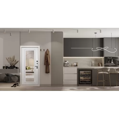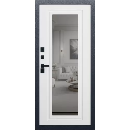 Модель с окном Арктика с зеркалом, выполнена по технологии терморазрыва специально для современных загородных домов и коттеджей с узкими прихожими.