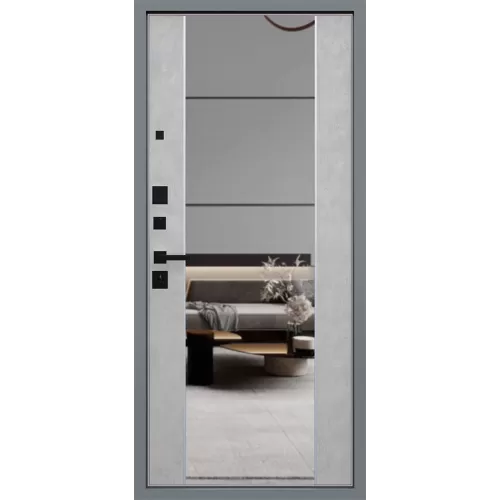 Стальная дверь Дуэт-Б с зеркалом - отличный вариант для покупателей, ценящих необычные интерьерные решения и функциональность. Во внутренней отделке модели используется встроенное зеркало - дизайнерский элемент, пользующийся повышенным спросом среди покупателей . Безопасность модели представляют два надежных замка с цилиндровым и сувальдным механизмом. "Дуэт-Б" - буквой "Б" в названии отмечаются модели серии дверей "Дуэт", выполненные в отделке из экошпона в цвете "бетон светлый, бетон темный"