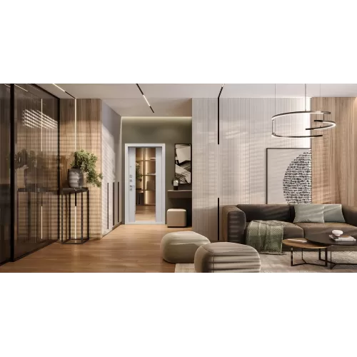 Стальная дверь Дуэт с зеркалом - отличный вариант для покупателей, ценящих классический стиль и функциональность. Особенность дизайна данной модели состоит в том, в дизайне внутренней отделки используется встроенное зеркало, которое найдет отличное применение в узких прихожих. Безопасность модели представляют два, проверенных временем, замка с цилиндровой и сувальдной основой.