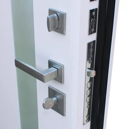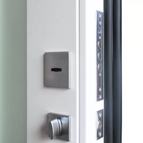 Наружный лист (1,5 мм) отделан панелью МДФ в строгом цвете "белый матовый", внутреннее полотно отделано экошпоном в элегантном цвете "белый матовый". Безопасность модели обеспечивают два замка Галеон и стальная броненакл... Читать далее...