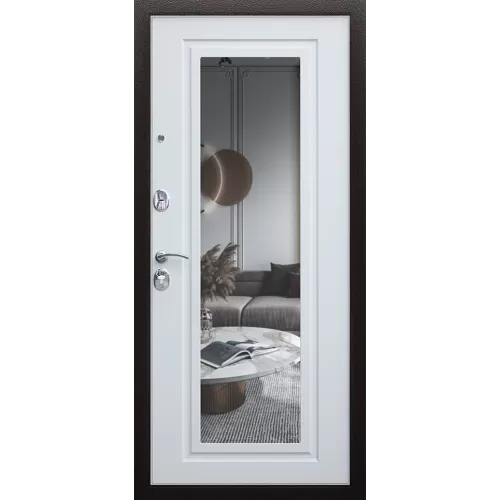 "Комфорт" с зеркалом - входная дверь, выполненная по стандартному проекту "АСД" для современных многоквартирных домов или частных домов с отапливаемыми тамбурами. Изделие прошло обязательную процедуру заводского контроля, результаты которого показали показали, что, согласно внутренним стандартам качества, данная дверная конструкция может гарантировать срок службы от 15 до 25 лет, если будет использоваться в соответствии со всеми условиями, указанными в Паспорте изделия.