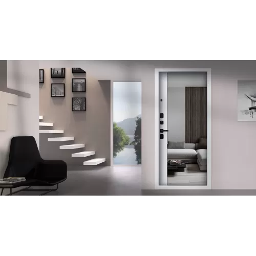 Наружный лист (1,5 мм) отделан панелью МДФ в строгом цвете "белый матовый" со вставкой черная лакобель, внутреннее полотно отделано БОЛЬШИМ ЗЕРКАЛОМ С ФАЦЕТОМ , с вставкой в замковой части экошпоном в элегантном цв... Читать далее...