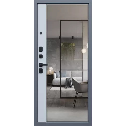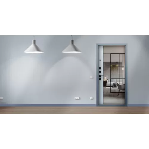 Наружный лист (1,5 мм) отделан панелью МДФ в строгом цвете "ясень графит" со вставкой черная лакобель, внутреннее полотно отделано БОЛЬШИМ ЗЕРКАЛОМ С ФАЦЕТОМ, с вставкой в замковой части экошпоном в элегантном цвете "лайт софт грей". Безопасность модели обеспечивают два замка Гардиан и стальная броненакладка. Благодаря качественному утеплению Манчестер не только защитит ваш дом от недоброжелательных гостей, но и сделает его более комфортным.