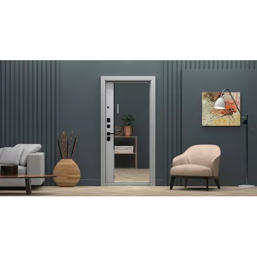 Наружный лист (1,5 мм) отделан панелью МДФ в строгом цвете "ясень графит" со вставкой черная лакобель, внутреннее полотно отделано БОЛЬШИМ ЗЕРКАЛОМ С ФАЦЕТОМ, с вставкой в замковой части экошпоном в элегантном цвете "кап... Читать далее...