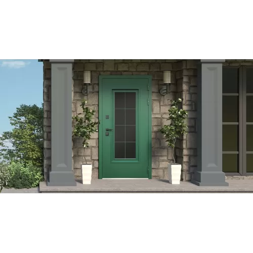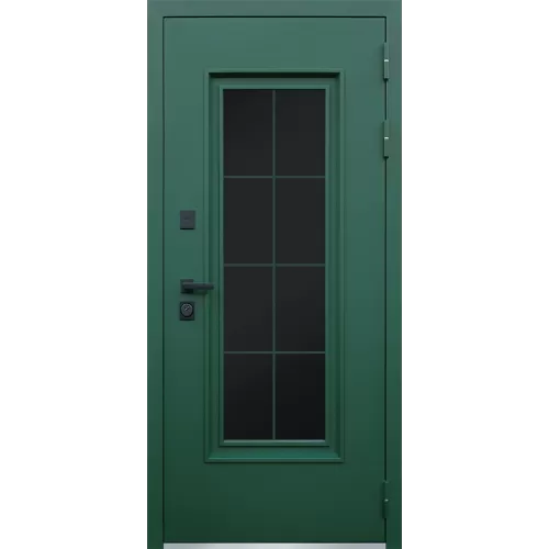 Модель Олимп с окном и английской решеткой - стальная дверь в которой, наряду с отличными характеристиками безопасности, объединены два важных преимущества: функциональное окно и композиции из английской решетки, придающих модели особый шик и элегантность.