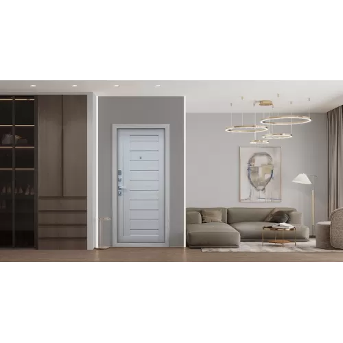 «Соло» - металлическая дверь со стильным дизайном и солидными характеристиками безопасности. Особого внимания заслуживает внутренняя отделка модели, представляющая собой сборную декоративную панель со вставками из матового стекла White Perl. Модель будет отлично сочетаться по стилю с дизайном межкомнатных дверей в квартире.