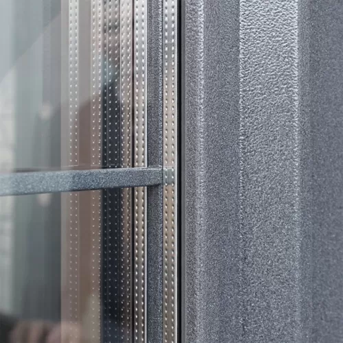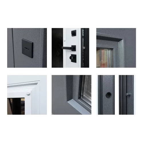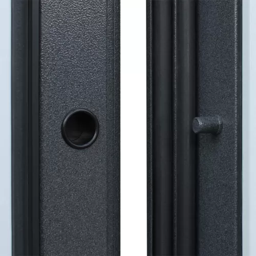 | Покрытие | Два цвета покраски рамы и полотна: внешняя сторона - "букле графит", внутренняя сторона - "муар белый". Два слоя покрытия: первый слой - цинкогрунт, второй слой - порошковое покрытие |