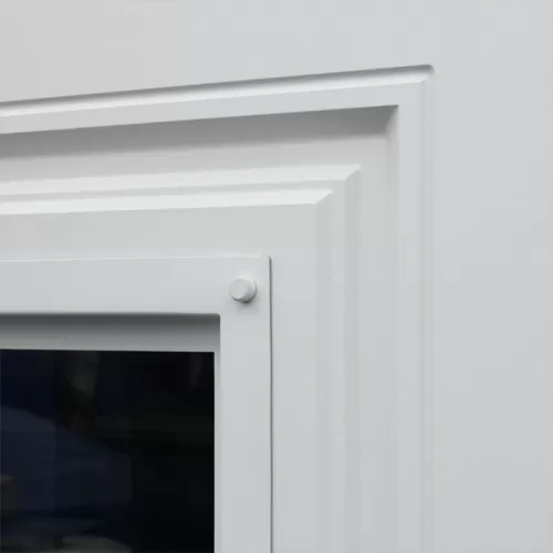 | Внутренняя отделка | Панель МДФ 16 мм (цвет "белый матовый"). Стеклопакет тонированный. Прижимная рамка. Объемная фрезеровка вокруг стеклопакета. |