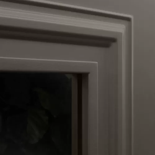 Панель МДФ 16 мм (цвет "белый матовый"). Стеклопакет тонированный. Прижимная рамка. Объемная фрезеровка вокруг стеклопакета.