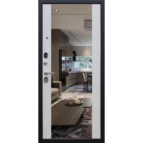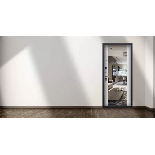 Входная дверь Вектор с зеркалом - выполнена в строгом универсальном дизайне, который одинаково хорошо будет смотреться в интерьере дома и современного офиса. Зеркало, вмонтированное во внутреннюю панель, позволит сократи... Читать далее...