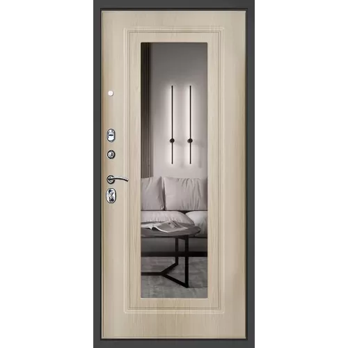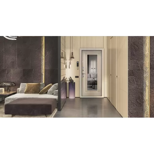 Стальная дверь Викинг- отличный вариант для покупателей, ценящих классический стиль и функциональность. Особенность данной модели состоит в том, в дизайне внутренней отделки используется встроенное зеркало, которое найдет отличное применение в узких прихожих.