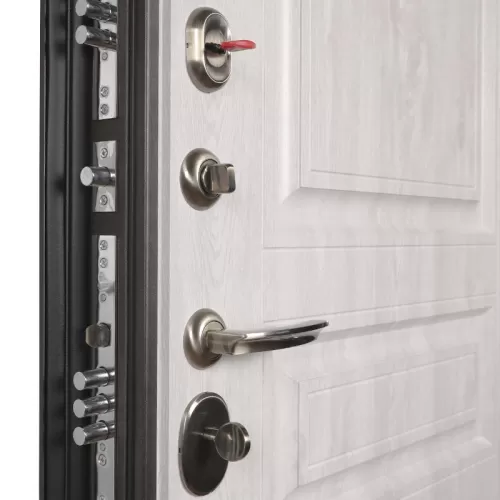 | Дополнительно | Евроцилиндр К-В перфокарта. Броненакладка врезная. Штырь противосъемный (3 шт.). Порог из нержавеющей стали (цвет "хром"). |