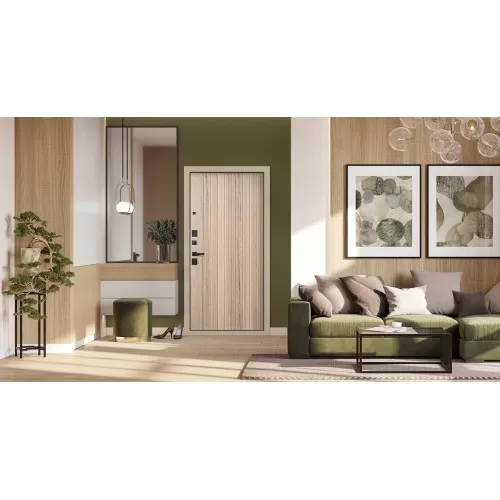 | Внутренняя отделка | Экошпонированная панель МДФ 10 мм (цвет «дуб галиф натуральный»). Линейная фрезеровка. |